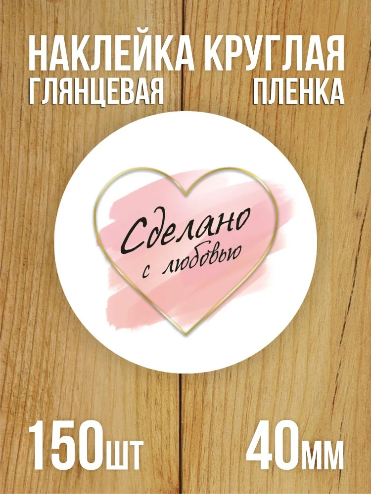 Наклейка стикер глянцевая круглая 40 мм 150 шт "Сделано с любовью v1"