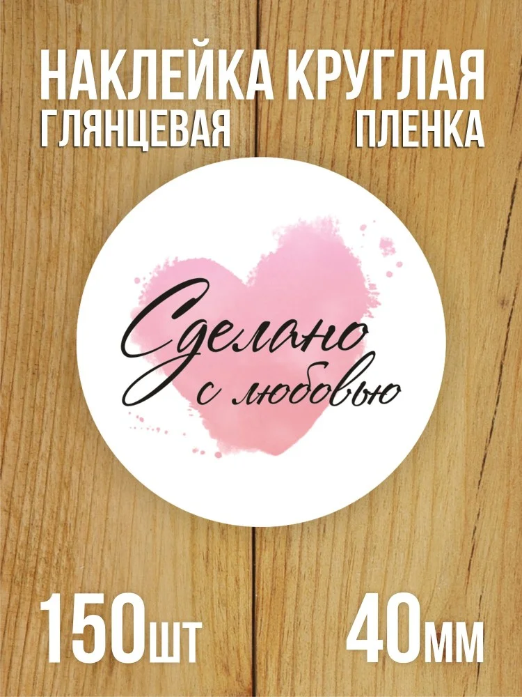 Наклейка стикер глянцевая круглая 40 мм 150 шт "Сделано с любовью v2"