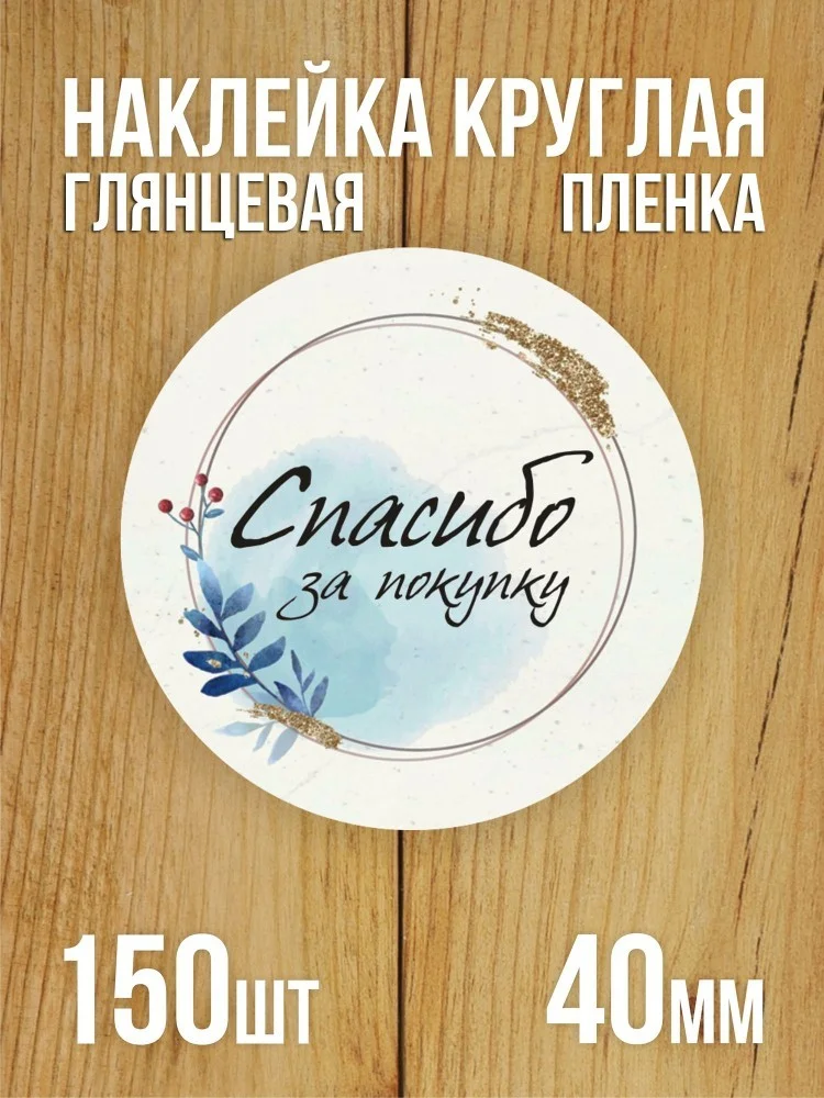 Наклейка стикер глянцевая круглая 40 мм 150 шт "Спасибо за покупку v2"