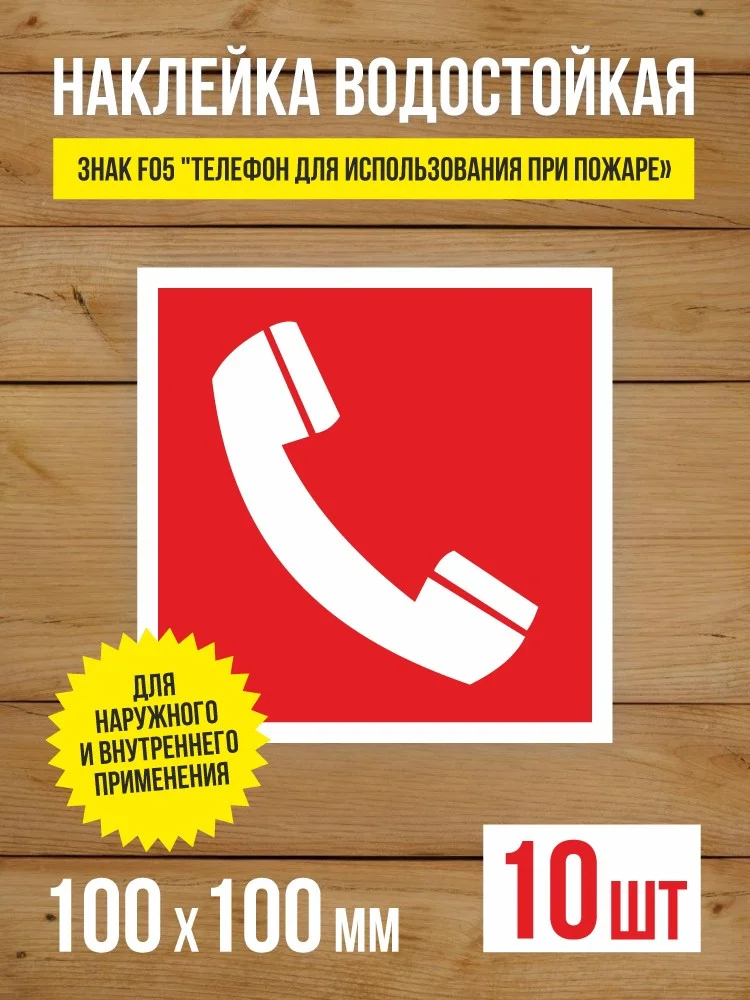 Наклейка Знак F05 "Телефон для использования при пожаре" виниловая, ГОСТ, 100х100 мм, 10 шт