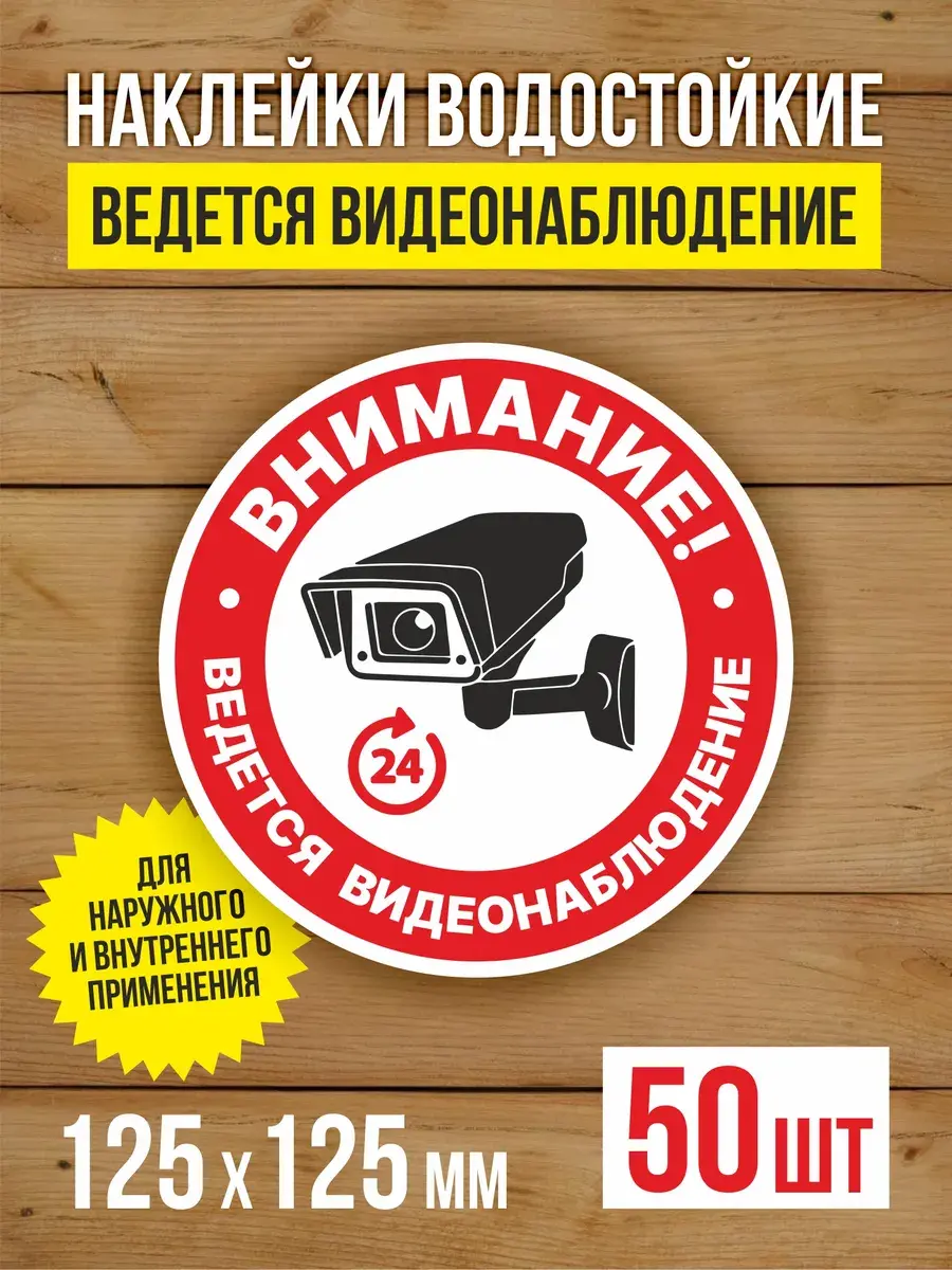 Наклейка Ведется видеонаблюдение 125х125 мм 50 шт