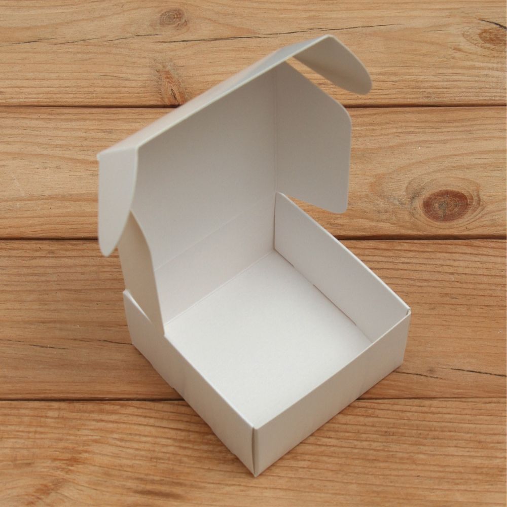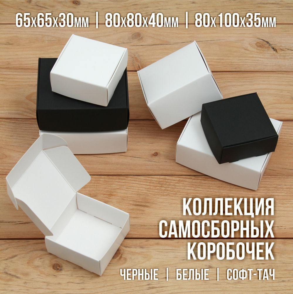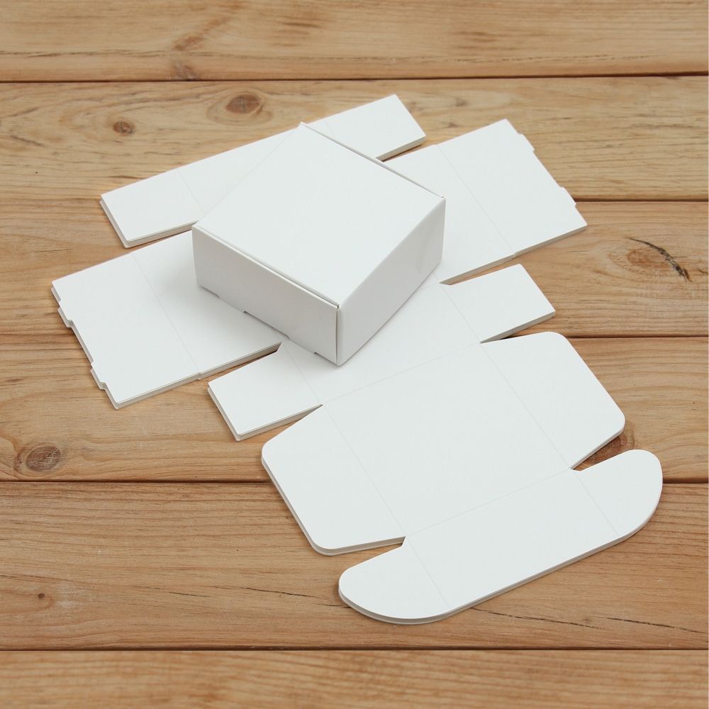 Мини коробочки упакованы в транспортировочный картон и прозрачный полиэтиленовый пакет в разобранном виде.